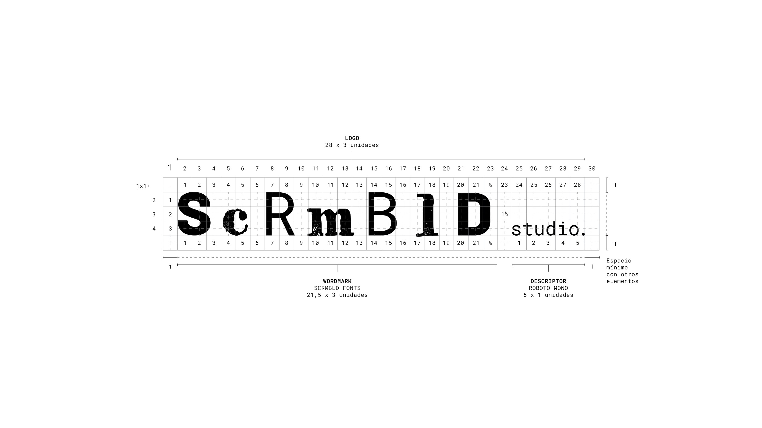 SCRMBLD es la mezcla, el revuelto de disciplinas, culturas, experiencias y medios.Esta mezcla cobra vida con diferentes tipografía que se mezclan y combinan para crear la marca. Tipografías humanistas, modernas, tradicionales, y grunge que reflejan el espíritu de la marca.